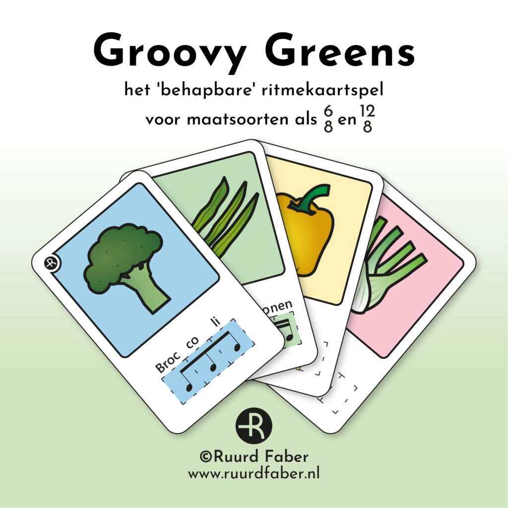 - Triolen: maak een ritme met Funky Fruit kaartjes, en vervang één of twee kaarten met Groovy Greens kaartjes.